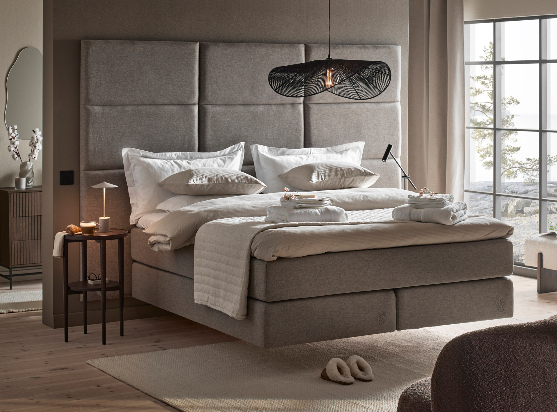 Cape Farewell är ett drömlikt möte mellan genuint hantverk och stilsäker design. Välj sängmodell, bäddmadrass, tyg, färg, ben och huvudgavel för att forma en säng som passar dig. För en extra bekväm sängstund kan du välja till en förvaringsficka i konjaksfärgat läder.