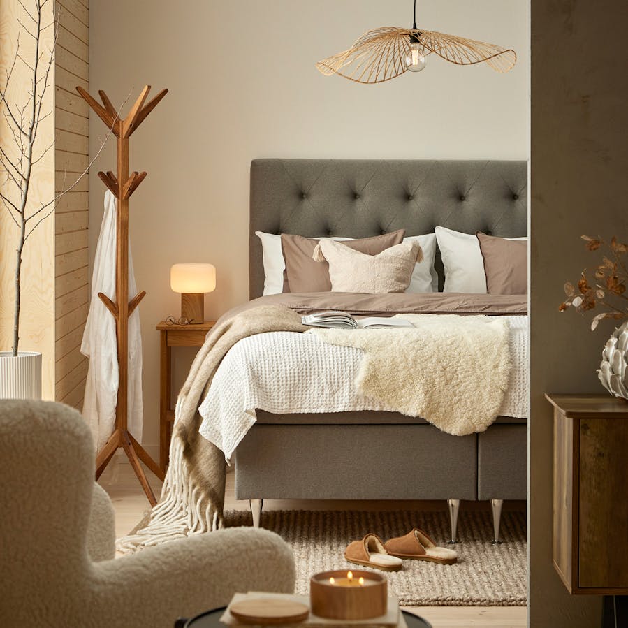 Mer åt det skandinaviska hållet, lite mer stilrent och sparsmakat med en New York i fräscht linnetyg, är en annan väg att gå. Oavsett om du gillar det eller går på känslan av hotellyx så kan du få en matchande sittbänk till. Perfekt att lägga kläderna på och förvara exempelvis sängkläder i.
