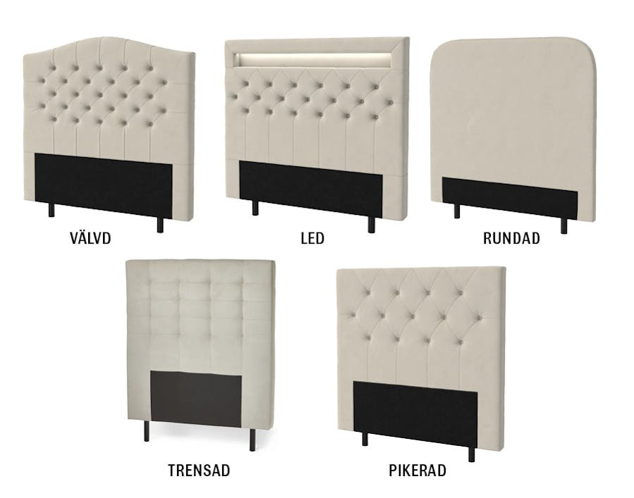 New York finns i fem olika sänggavlar som alla står för olika stilar, vad sägs om en lyxig sänggavel med LED-belysning?