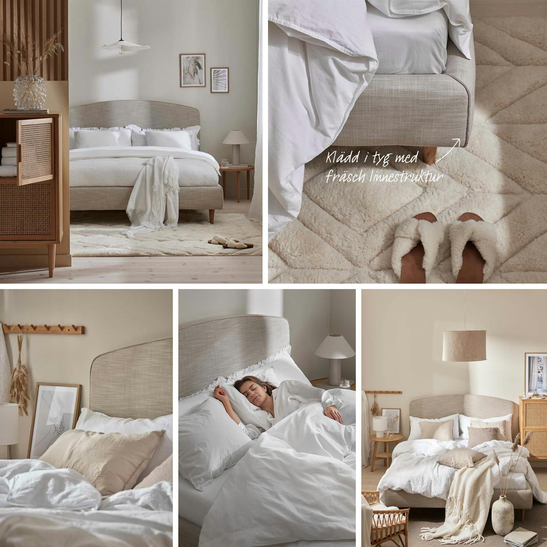 Sängmodellen Soul är en lite lägre säng i skandinavisk stil för dig som tycker om enkelhet och naturlighet. Att sängramen är klädd med ett tyg i linnestruktur ger ett mjukt intryck till sovrummet.