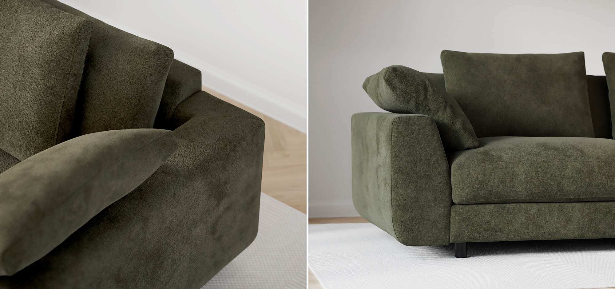 Soffan anpassar sig efter dig, din vardag och din stil. Vill du utöka sittdjupet? Flytta ryggkuddarna. Vill du komma upp lite? Välj de lite högre benen.