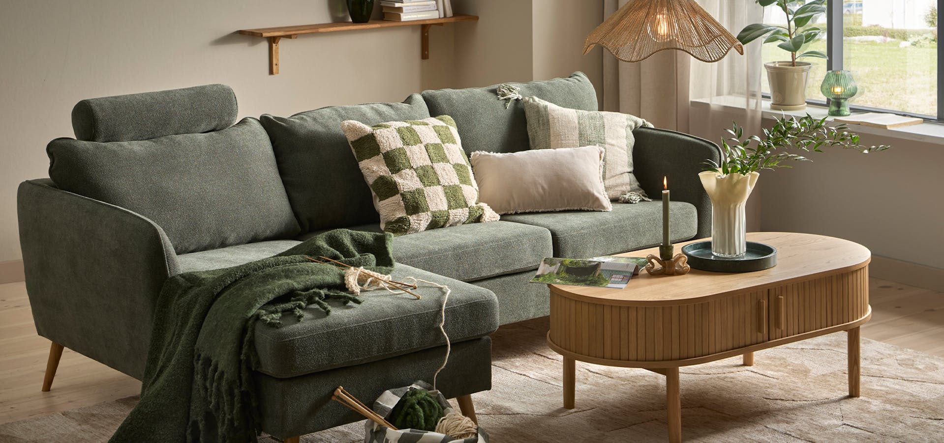 Då kan en County i hörnsoffmodell passa hemma hos dig. Placera den mitt i rummet och förstärk den luftiga känslan genom att lämna utrymme att passera runt soffan. Hörnet på soffan är perfekt att sitta i med uppdragna ben när du vill läsa en bok eller bläddra i en tidning.