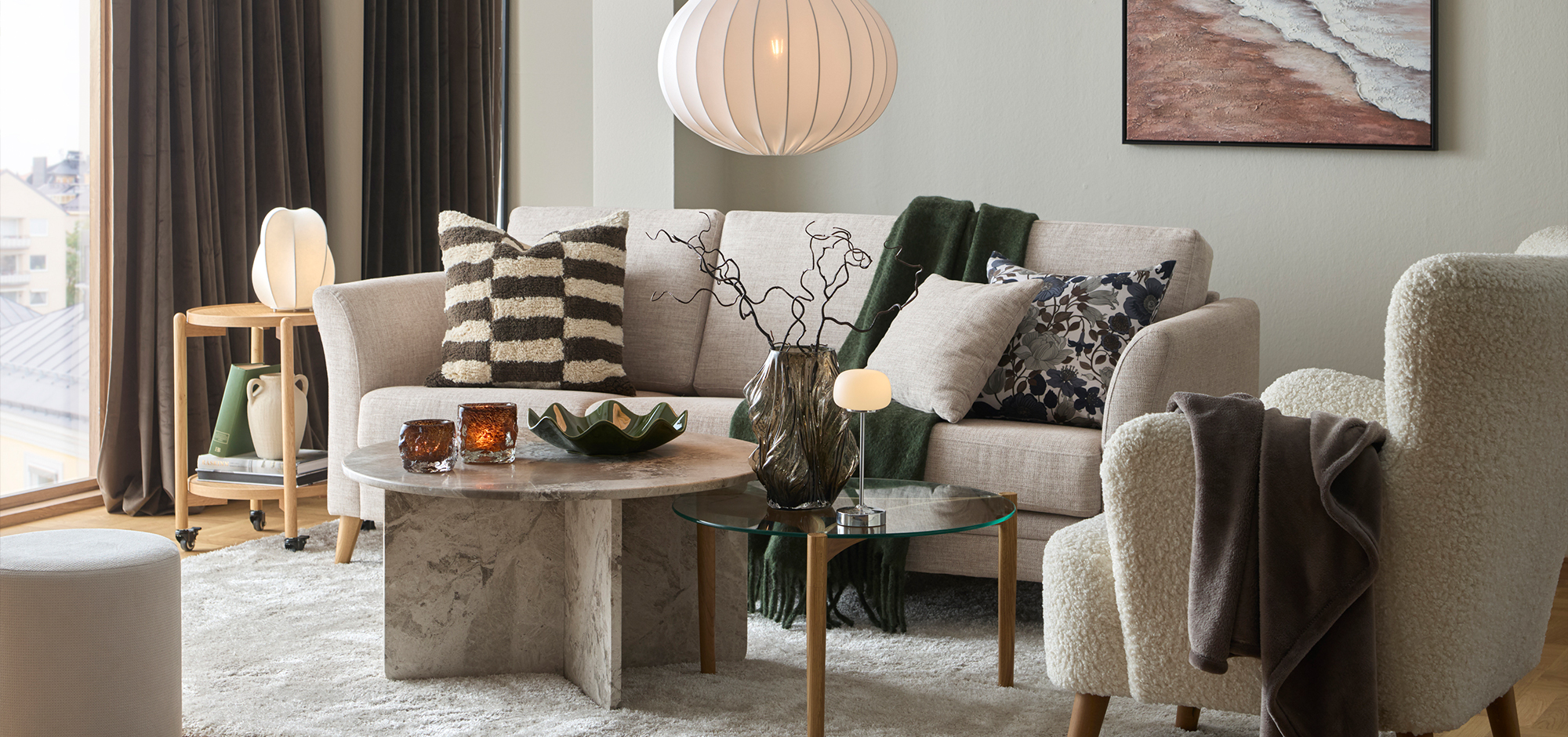 I Eden kan du varva ner och samla familj och vänner för härligt umgänge. Den fungerar lika bra för avslappning som för sociala stunder. Bygg gärna din vardagsrumsdröm med olika storlekar av Eden. Kombinera exempelvis en fåtölj med en 3- och en 2,5-sitssoffa samt en fotpall. Låt dem samspela med ekmöbler, textilier i en harmonisk färgskala och mycket grönska.