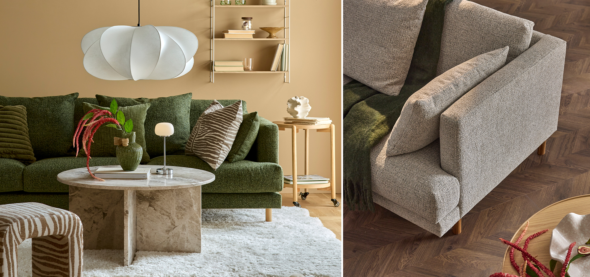 I vår soffbyggare kan du snabbt och enkelt se hur din Harper ser ut med olika armstöd, ben, tyger och andra val!