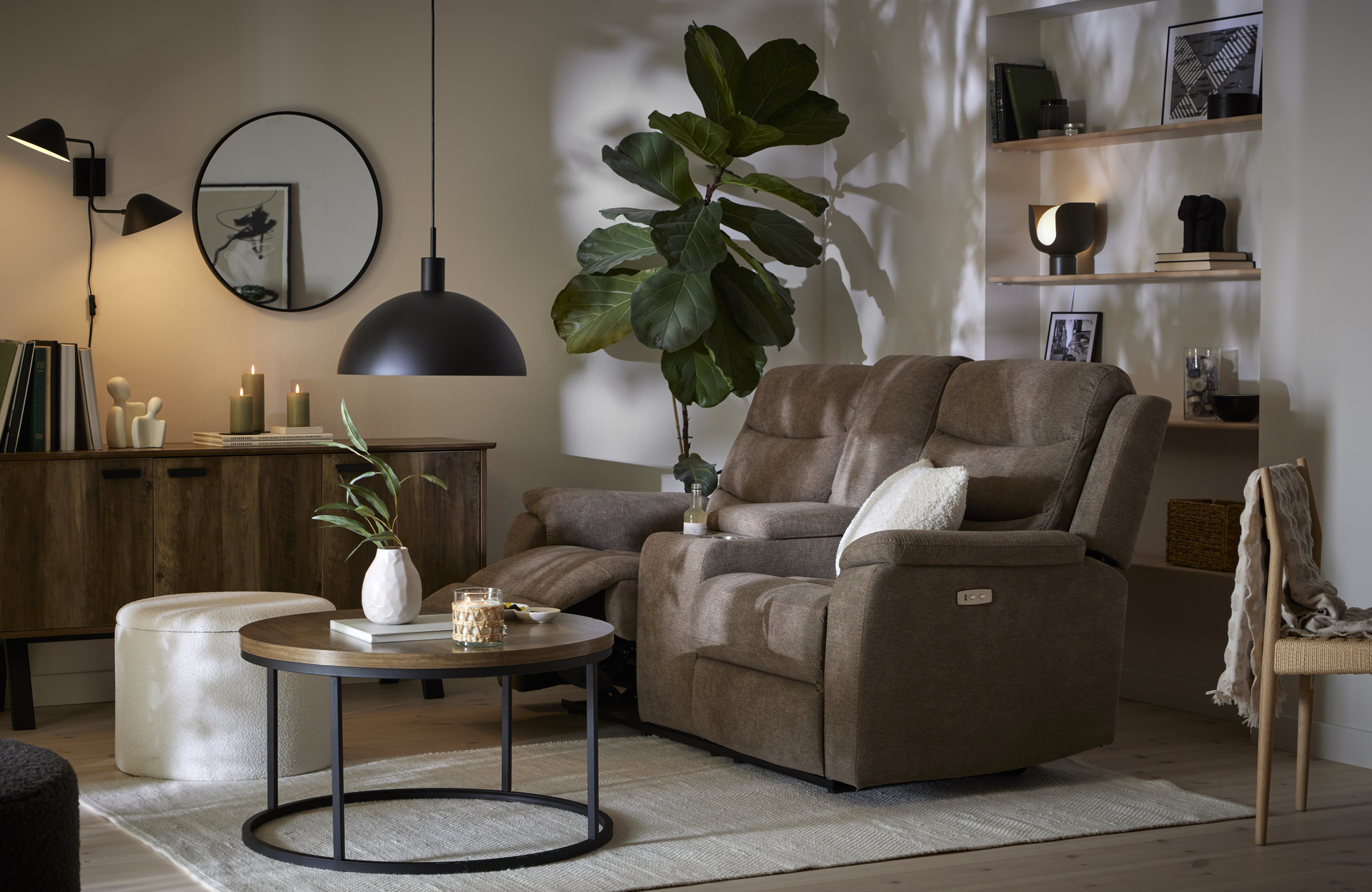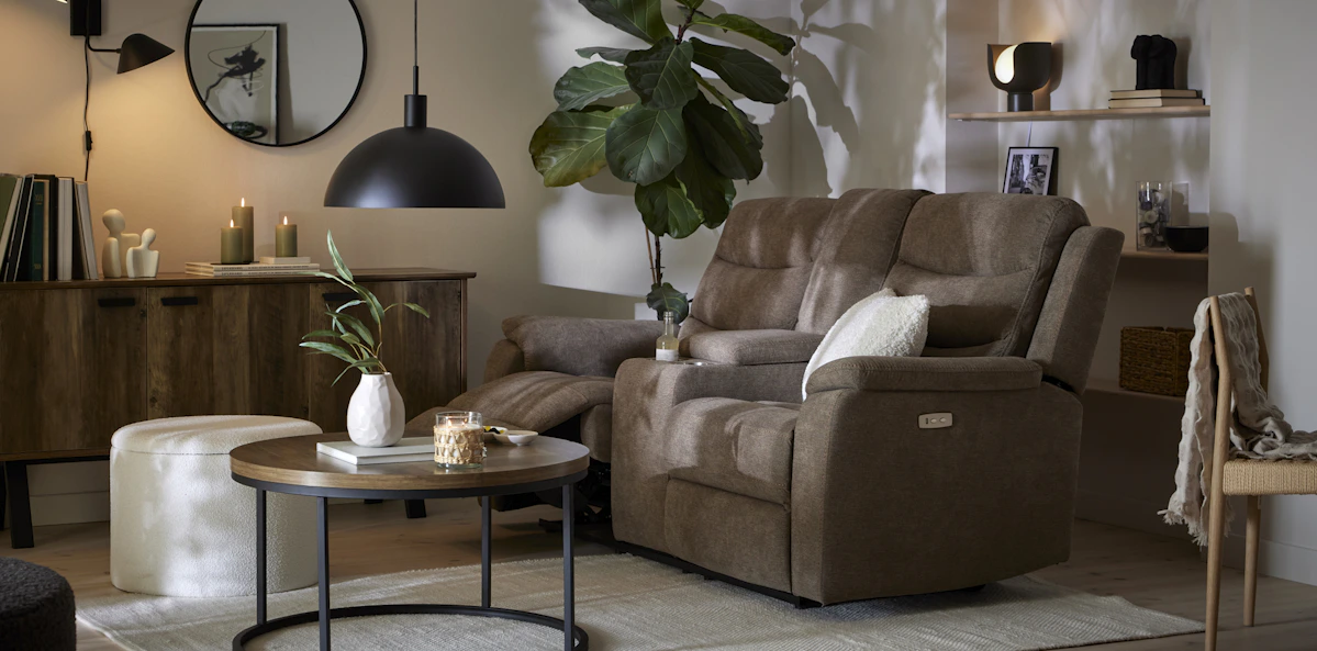Plats för fler? 3-sitssoffan och även hörnsoffan har elrecliner i ytterplatserna. 3-sitsen finns även med manuell recliner. Och vet du vad? Det finns även en Lazy-fåtölj att mysa ner sig i. Bra att komplettera soffan med eller ha som solitär i ett hörn för exempelvis sköna lässtunder.