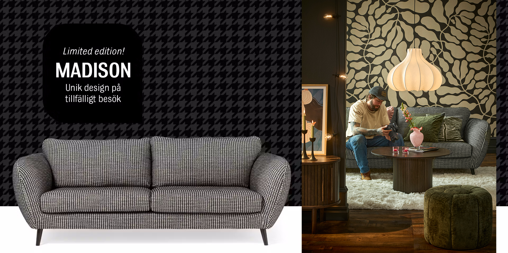Oavsett om du redan har en Madison hemma eller planerar att göra ditt första köp av denna älskade moderna klassiker är 2025 rätt år att göra det. Fira med oss under hela året – vi erbjuder både festpriser och en specialutgåva i kaxigt hundtandsmönster som du inte vill missa.