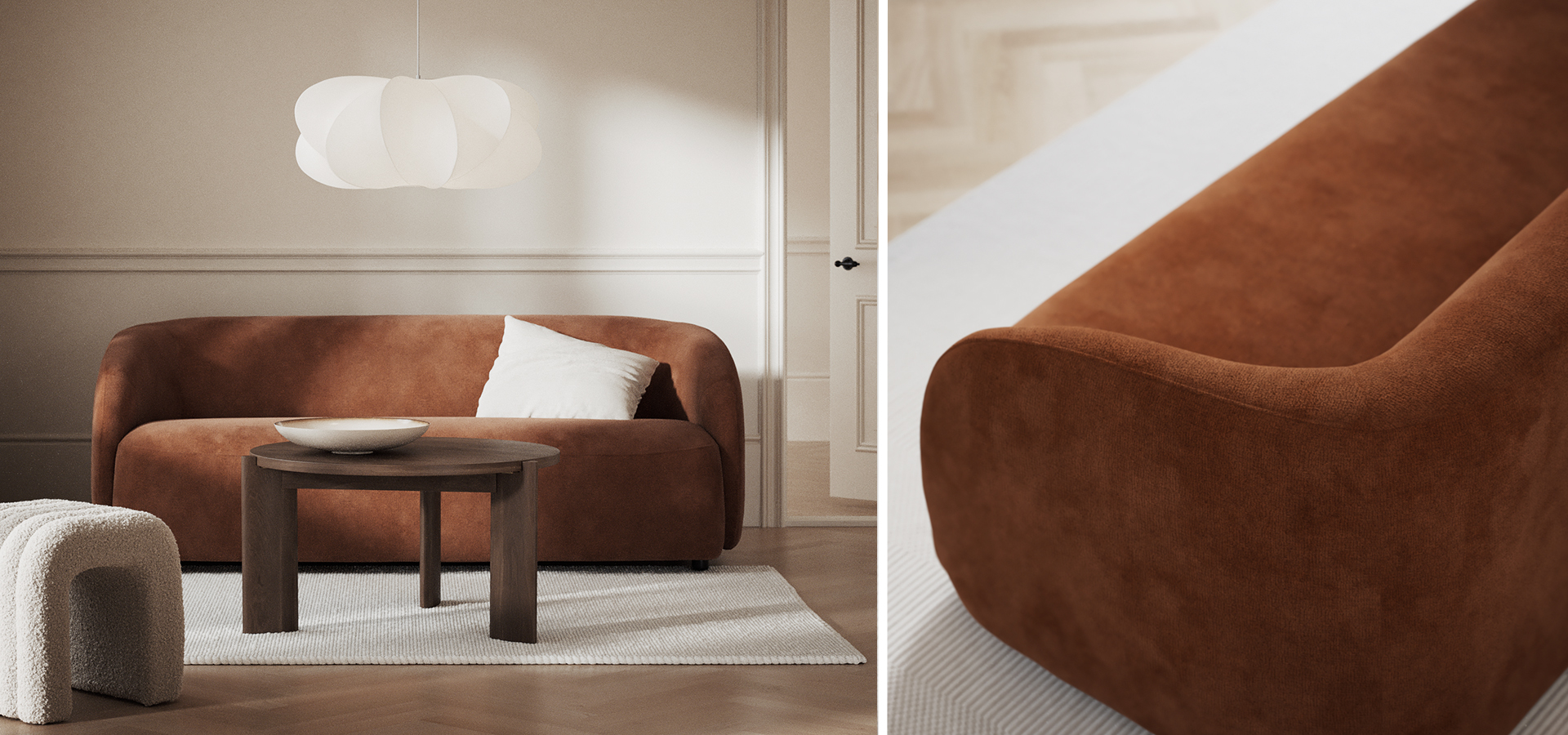 Sonia är en kurvig skönhet som bidrar med elegant loungekänsla i rummet du placerar den i. En låg rygg och mjukt rundade former gör att soffan känns väldigt modern.